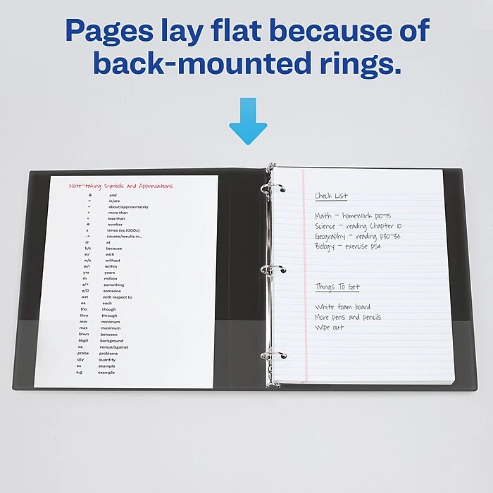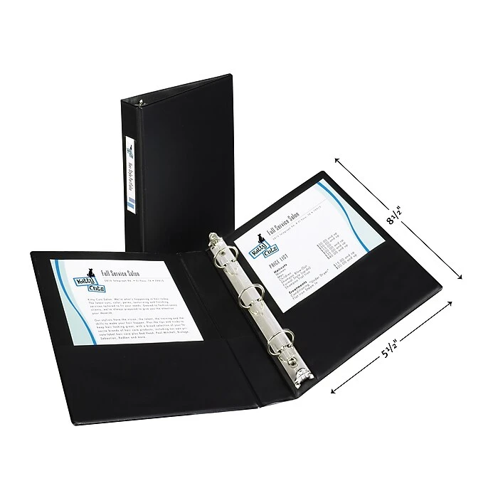 This compact binder helps you organize your day-it’s ideal for note-taking, and it fits comfortably in smaller bags, briefcases, and glove boxes. With panels that cover standard dividers and sheet protectors, the binder features durable construction for frequent reference, two interior pockets for organization, and back-mounted rings to make pages lay flat.