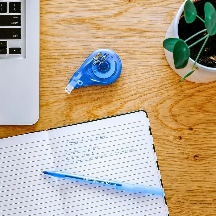 Cover up mistakes with this 33.3-foot roll of white correction tape. The strip doesn’t leave a shadow on photocopies or faxes, and the tape goes on dry so you can write over it immediately. This BIC correction tape measures 0.17-inch to cover a single line of text without obscuring other things on the page.