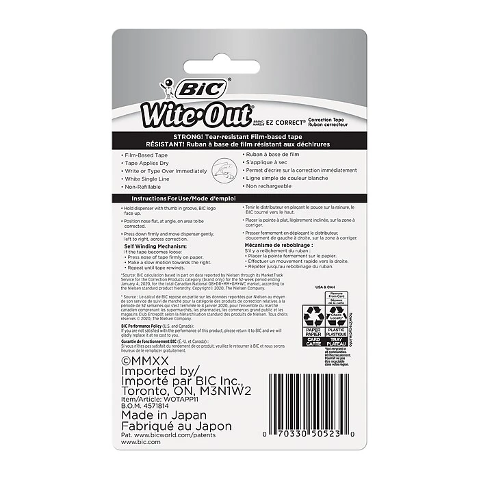 - Tear-resistant, film-based tape applies dry for instant corrections