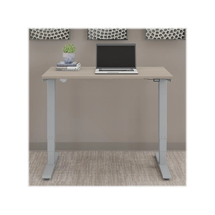 The Bush Business Furniture Move 40 electric height-adjustable standing desk is a perfect way to build an ergonomic workspace without the high-end price tag. Give your body and mind a break from sedentary work, and enjoy a healthier, more productive office with the push of a button. Three-stage units lift the desktop anywhere from 28″ to 48″ at a speed of 1.25″ per second, so you can change positions without missing a beat. The adjustable desk also features an anti-collision sensor that stops movement up or down if an object is detected. Available in several finishes, the durable thermally fused laminate work surface resists scratches and stains, while a welded 16-gauge steel base allows the desktop to support up to 176 lbs. This sit-stand desk is tested to meet ANSI/BIFMA quality standards for safety and performance and is backed by a 5-year manufacturer warranty.