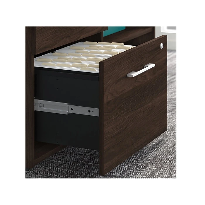 - File drawer opens on smooth full-extension ball bearing slides for easy access to legal-, letter-, and A4-size paperwork