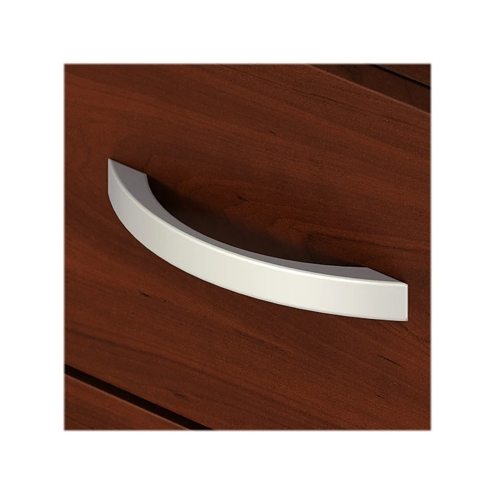 Designed to keep materials nearby, the Bush Business Furniture Studio C three-drawer mobile file cabinet features professional quality with a contemporary feel. The Bush Business Furniture Studio C three-drawer mobile file cabinet rolls with you on any surface throughout your office or remains in place as needed. You’ll have your letter, legal, and A4-size paperwork organized in no time. The two box drawers hold your pens, notepads, and small office supplies. The file drawer opens on full-extension ball-bearing slides, making it easy to reach papers at the back. The hooded dual-wheel casters keep the three-drawer cabinet moving on your floor or carpet. A single lock secures the bottom two drawers to protect sensitive paperwork and personal items. The eye-catching brushed nickel drawer pulls complement your choice of several contemporary or traditional finishes. The mobile file cabinet comes with a 10-year warranty and meets ANSI/BIFMA quality test standards. American-made with US and imported parts.
