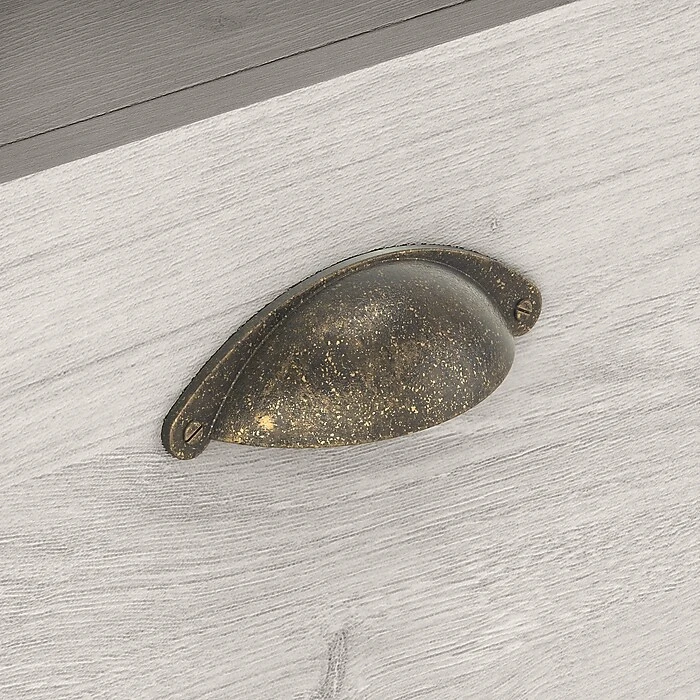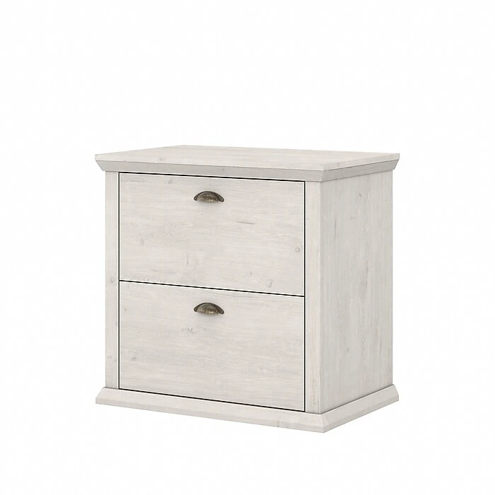 The Bush Furniture Yorktown two-drawer lateral file cabinet presents a stylish and practical solution for organizing documents in any work or living space. Two file drawers open on smooth full-extension ball bearing slides for an effortless reach to letter-, legal-, and A4-size paperwork. The drawers are designed to extend one at a time for maximum stability on both hard and carpeted surfaces, and each drawer holds up to 50 lbs. of materials. The two-drawer file cabinet’s height matches that of the Bush Furniture Yorktown L-shaped desk, corner desk, and home office desk to create an extended work surface when positioned side by side. Bush Furniture Yorktown’s classic charm is highlighted by stylish beveled edge detailing and oil-rubbed bronze drawer pulls that complement your choice of finish. This lateral file cabinet is tested to meet ANSI/SOHO standards for safety and performance and is backed by a 1-year manufacturer limited warranty.