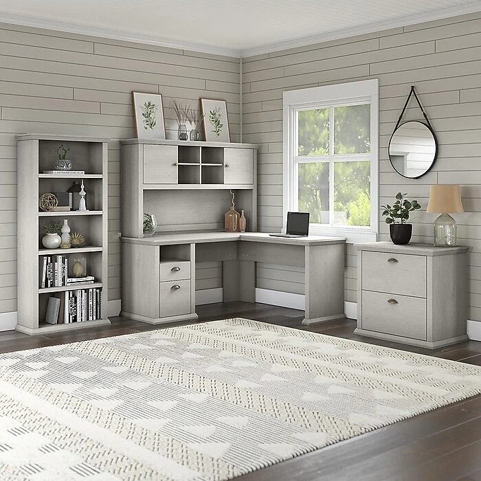 - Coordinating items include an office chair, five-shelf bookcase, and desks with optional hutch and organizers (sold separately)