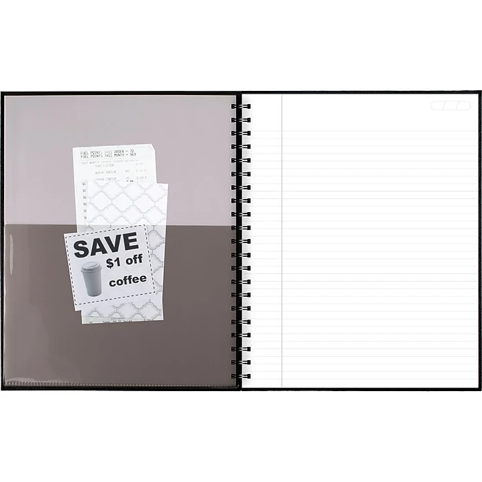 - Poly pocket stores loose sheets. Label page is included to customize the notebook. High quality paper contains a minimum of 30% post-consumer waste recycled material