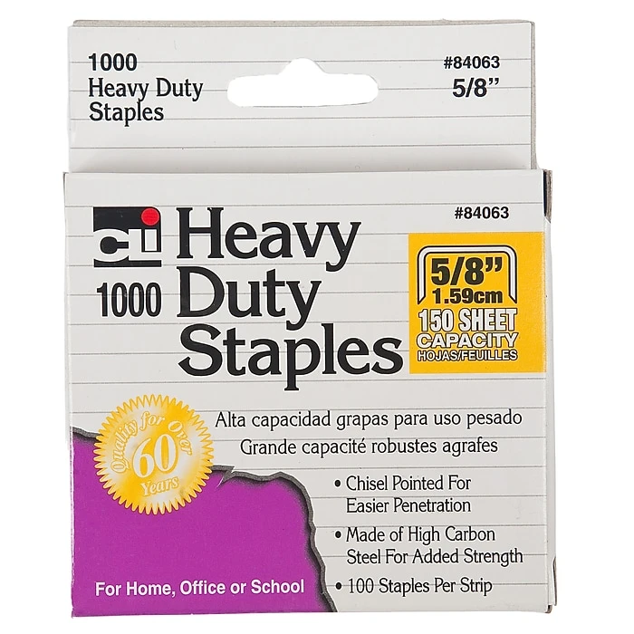 Heavy Duty chisel pointed staples which are durable and perform well in most stapling machines. 1000/Box