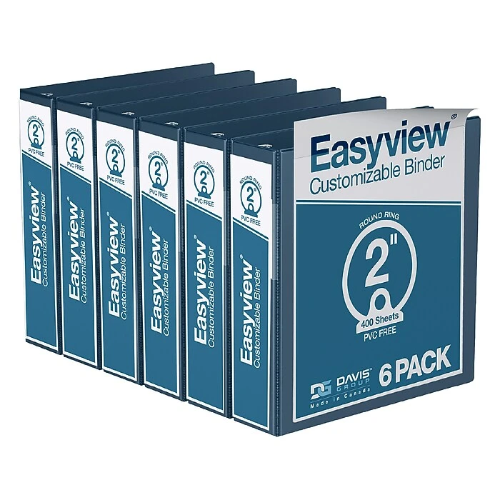 This Davis Group Easyview Premium customizable view binder is perfect for presentations, manuals, projects, reports, and more. The front cover, spine, and back cover feature an ink transfer resistant clear overlay, allowing you to customize each binder and make it your own. Complete with clear interior front and back cover pockets for loose document security. Back-mounted rings allow pages to lie flat. Made of PVC-free polypropylene material for enhanced durability. 100% recycled board with 85% post consumer waste.