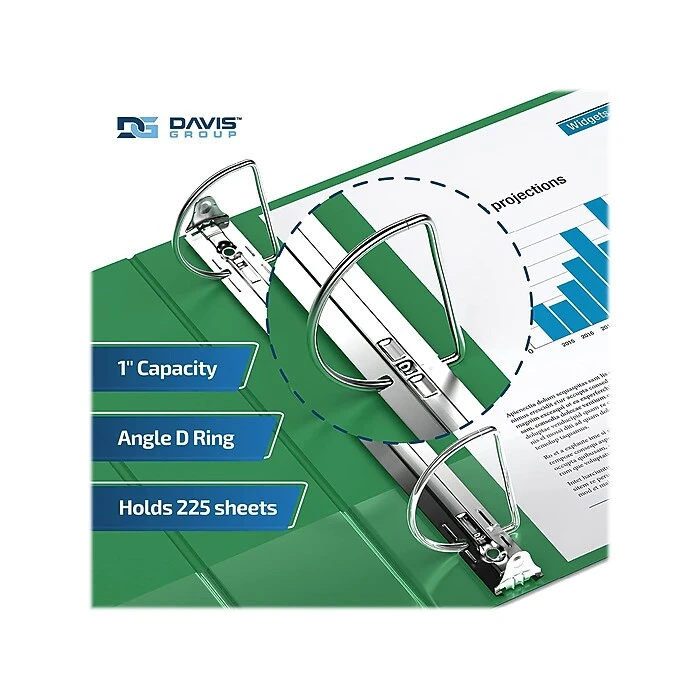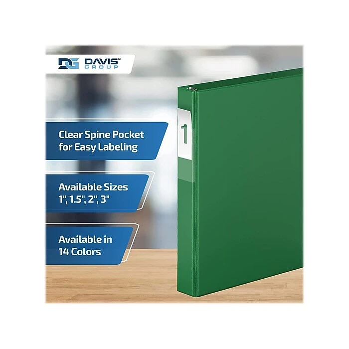 This Davis Group Premium Economy binder features a clear interior pocket on the front and back covers to secure loose documents and allow for easy identification of contents. Perfect for conferences, references, colleges, and universities. Features a full-width label holder on the spine. Made of PVC-free polypropylene for enhanced durability. 100% recycled board with 85% post consumer waste.