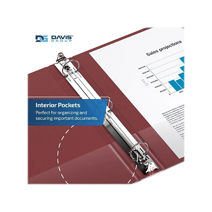 This Davis Group Premium Economy binder features a clear interior pocket on the front and back covers to secure loose documents and allow for easy identification of contents. Perfect for conferences, references, colleges, and universities. Features a full-width label holder on the spine. Made of PVC-free polypropylene for enhanced durability. 100% recycled board with 85% post consumer waste.