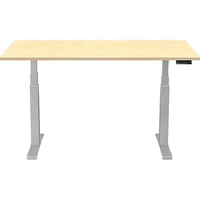 - Quiet yet powerful motor provides height adjustment from 24.75″ to 50.25″ with stable three-stage legs