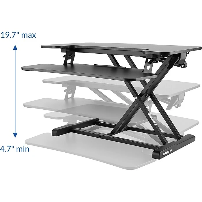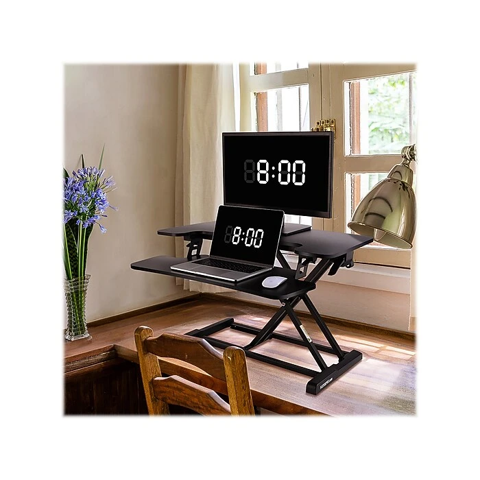 The FlexiSpot desktop workstation provides an easy way to transition between sitting and standing throughout the workday. The spacious desk offers a deep work surface, a wide keyboard, and instant tablet integration. This quality workstation offers smooth up/down motion, height adjustment settings, and ergonomic monitor mount compatibility.