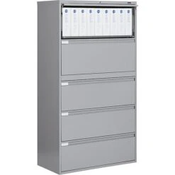 HON Brigade 600 Series 5-Drawer Lateral File Cabinet, Locking, Letter/Legal, Gray, 42″W (H695.L.Q)