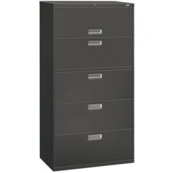 HON® Brigade 600 Series Lateral File Cabinet, A4/Legal/Letter, 5-Drawer, Charcoal, 19 1/4″D (685LS)