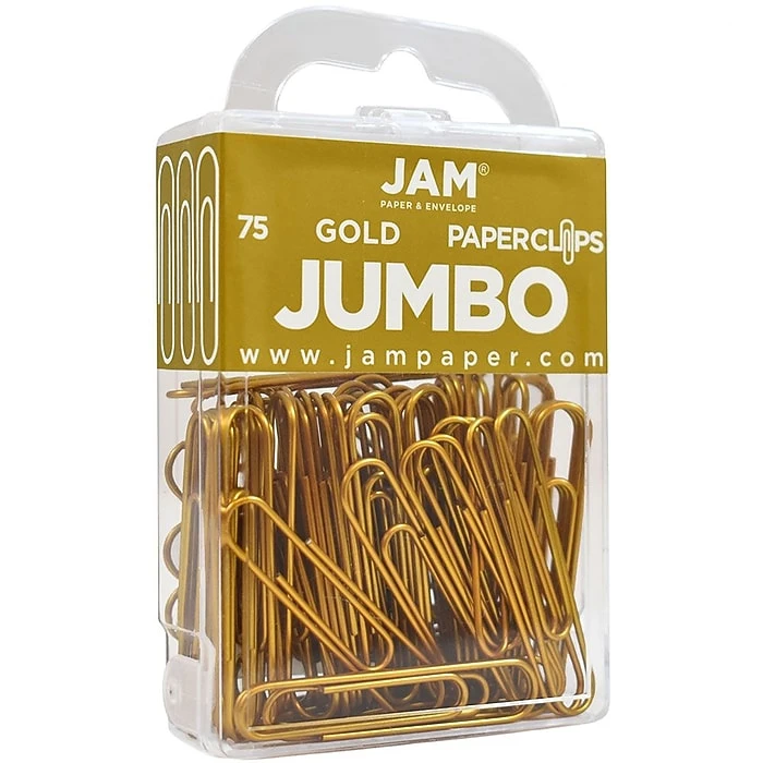 JAM Paperยฎ Jumbo 2 inch paperclips are a great way to stay organized at home, school or the office. These large paperclips are made from vinyl coated wire metal and are available in a wide variety of colors including: Black, White, Blue, Baby Blue, Red, Green, Orange, Yellow, Pink, and Purple.