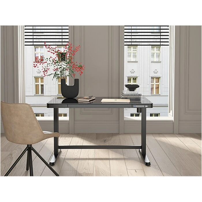 - This height-adjustable smart desk is designed to seamlessly transition from sitting to standing with the touch of a button