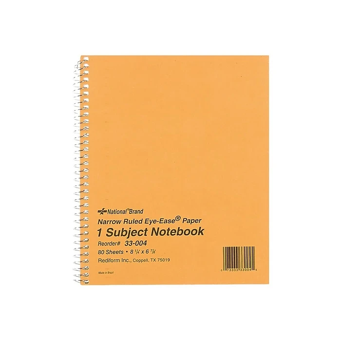 Keep track of ideas and other information with this narrow-ruled one-subject notebook. The pages are tinted green for easy viewing, while the wirebound side ensures that pages turn smoothly every time. This National Brand one-subject notebook has 80 narrow-ruled sheets that let you fit lots of writing on each page, while the compact size makes it easy to stash in a drawer or backpack.