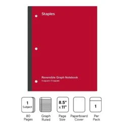 Staples Wireless 1-Subject Notebook, 8.5″ X 11″, Graph Ruled, 80 Sheets, Red (TR58383)