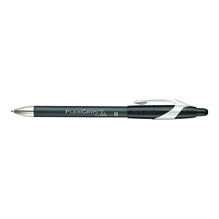 Glide across the page with smooth and precise writing using these Paper Mate FlexGrip Elite black retractable ballpoint pens. The ink is fade-resistant and water-resistant and flows smoothly from tip to paper for consistent, skip-free lines. These comfortable Paper Mate FlexGrip Elite retractable ballpoint pens have a 1.0mm tip for rich, vivid writing.