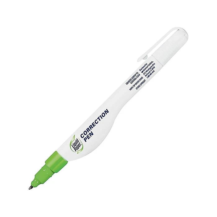 Ensure documents are free of errors with this all-purpose correction pen. The unique barrel design lets you control how much liquid to dispense depending on how hard you squeeze, while the fine point makes this pen ideal for correcting individual letters and numbers. This Paper Mate Liquid Paper correction pen boasts a double-ball tip to prevent clogging, and the fluid dries quickly, allowing changes to be made shortly after application.