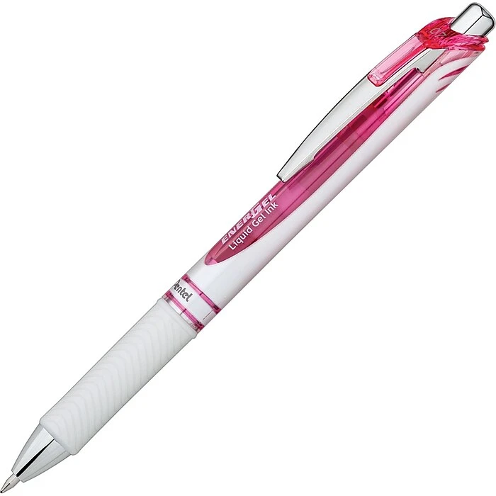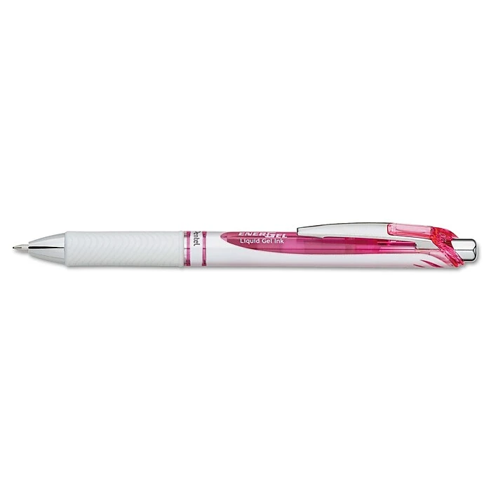Pentel Energel Liquid gel pen features fast drying ink in pink color and its latex free grip offers maximum comfort. Pen with a medium steel tip gives a professional look with sleek and stylish pearl/pink barrel and stainless steel accents.