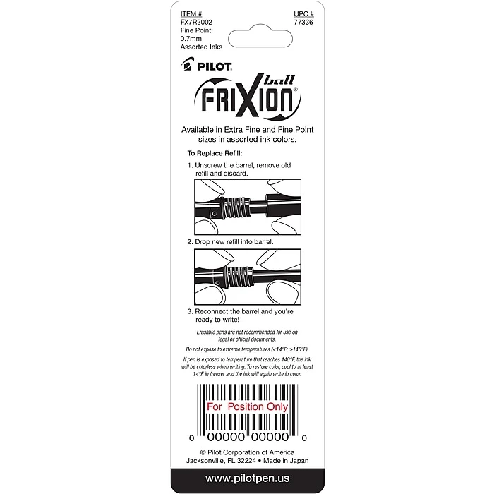 - Note: FriXion Erasable Pens are not recommended for signatures or official legal documents