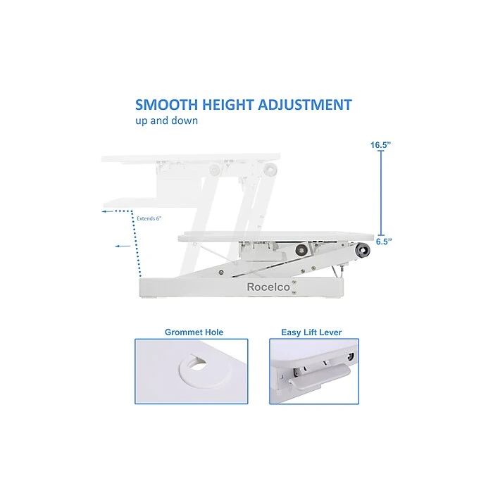 The Deluxe Adjustable Desk Riser offers a unique retractable keyboard tray technology offers ergonomic comfort without the hassle of having to manually reset your riser.