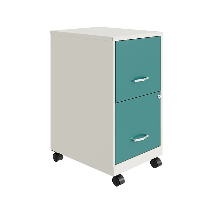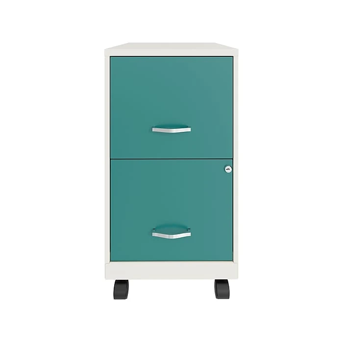 The Space Solutions SOHO Smart File mobile two-drawer metal vertical cabinet is designed for small office or home office use. The cabinet features a smart, efficient design that works well in small spaces and fits under most work surfaces or desks. Each drawer features high sides to accommodate letter-size hanging files. The drawers are also a perfect storage solution for other office essentials. Using a patented glide suspension, the drawers have a smooth open and close slide with a three-quarter drawer extension to prevent tipping. In addition, you can keep your files and possessions secure by using the built-in lock for both drawers. The additional wheels that come with this file cabinet are both stylish and functional, which makes it easy to move around your home or office. Painted steel surface is nonporous and easy to clean. Bring organization and function to your home or office with this stylish mobile two-drawer file cabinet. Your supplies and files will always be organized and within reach.