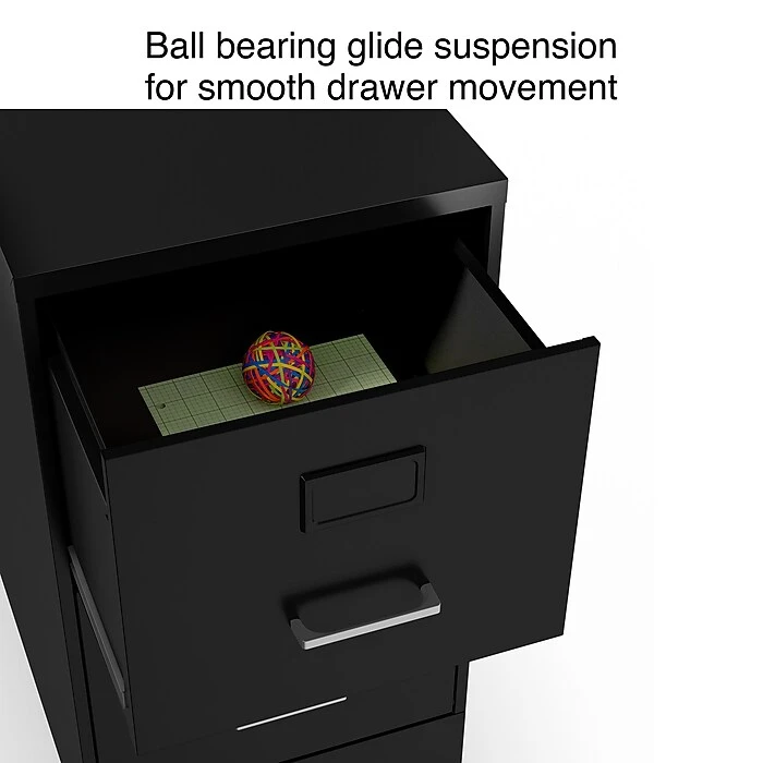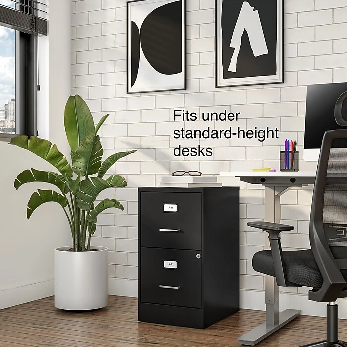 Keep documents accessible with this light duty vertical file cabinet. Integrated label holders let you categorize paperwork stored in each of the two drawers, and convenient handles make the drawers easy to open. With a compact size, this cabinet fits neatly in small work spaces. A keyed lock keeps important papers and personal items stored securely inside. This letter-size vertical file cabinet boasts a flat top surface, which offers convenient space for a printer, a fax machine or other office essentials.