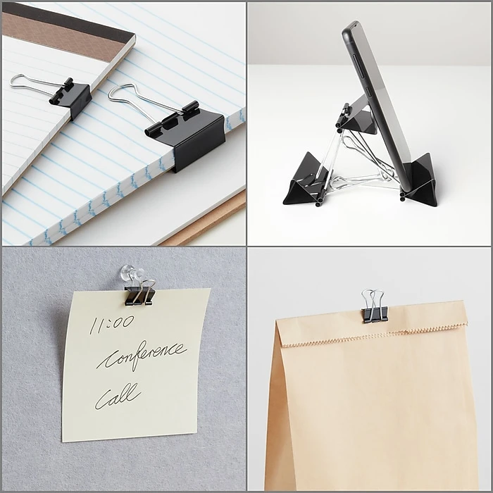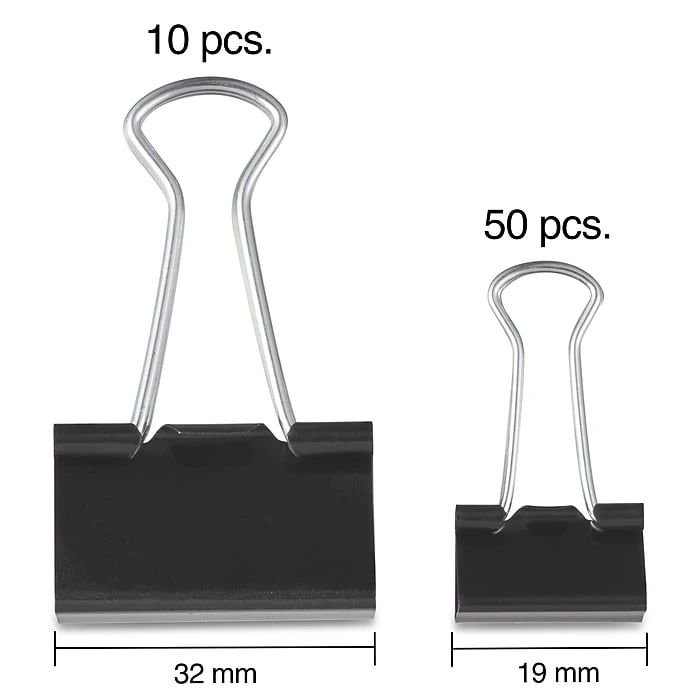 Ensure individual sheets of paper don’t fall out of the stack with these assorted metal black binder clips. Each binder clip is built with resilient metal to offer durability, and it’s spring tight, ensuring that what you bind together stays that way. These Staples metal assorted-capacity binder clips come with 50 mini clips and 10 medium clips to provide versatility.