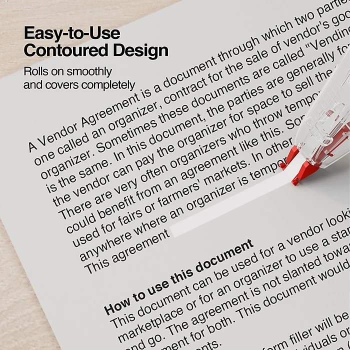 - Correction tape in ergonomic contoured design fits comfortably in the hand