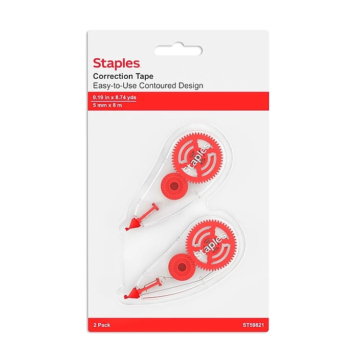 Redact confidential information and correct errors on faxes and copies with these topwinder correction tapes. The contoured ergonomic dispensers fit in the hand comfortably to support effortless application. With a fast-dry formulation, the tapes let you rewrite text quickly and make multiple revisions efficiently. These white Staples topwinder correction tapes lay down smoothly and leave no smudges or shadows, effectively hiding a multitude of errors.