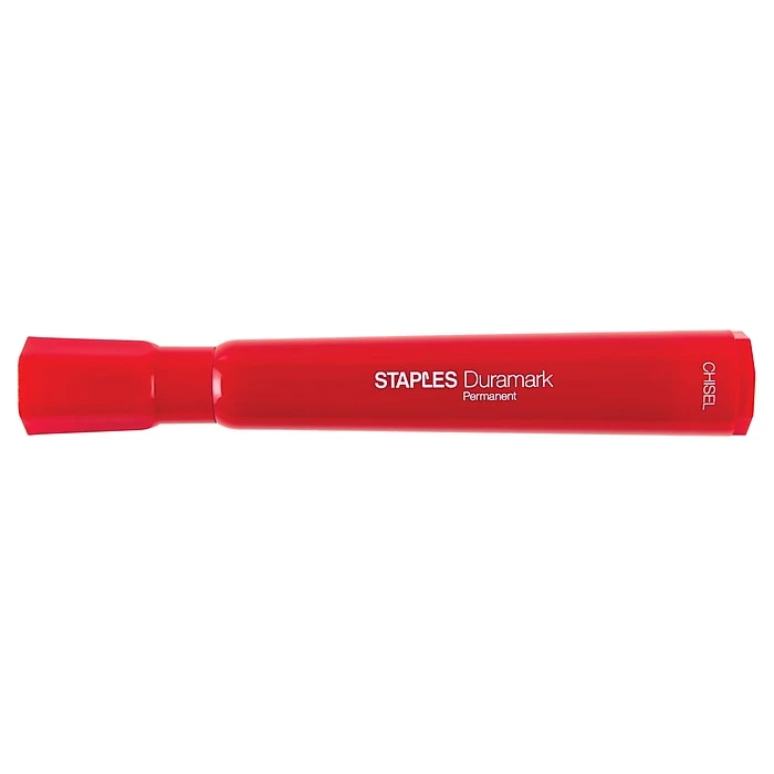 Write on almost any hard surface with these Staples Duramark permanent markers. The chisel tip lets you make bold or fine lines, while the fast-drying ink resists water, smearing and fading. These markers work on glass, metal, wood and almost any other nonporous surface. These Staples Duramark permanent markers come in a pack of 12, so keeping your home or office stocked is easy.