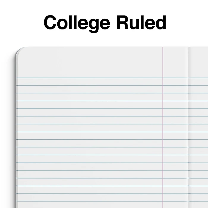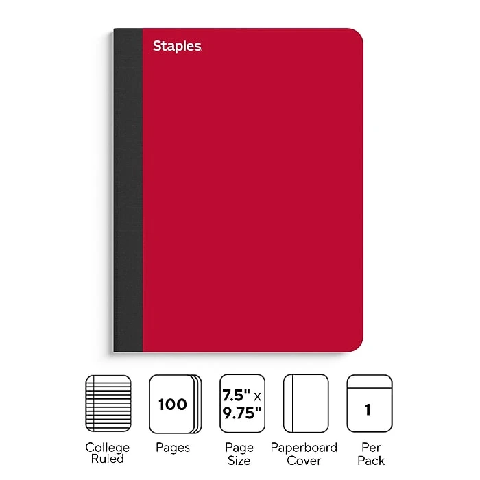 Handle your writing needs with this college-ruled composition notebook. Each book has 100 college-ruled pages, offering maximum use of space, and the sheets are permanently sewn, reducing the risk of lost pages. This Staples Business Essentials 7.5 x 9.75-inch college-ruled composition notebook has a standard design, making it easy to slip in a bag.