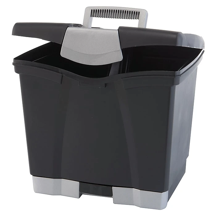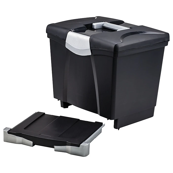 - Portable file box with bottom tray is ideal for personal organization on the go