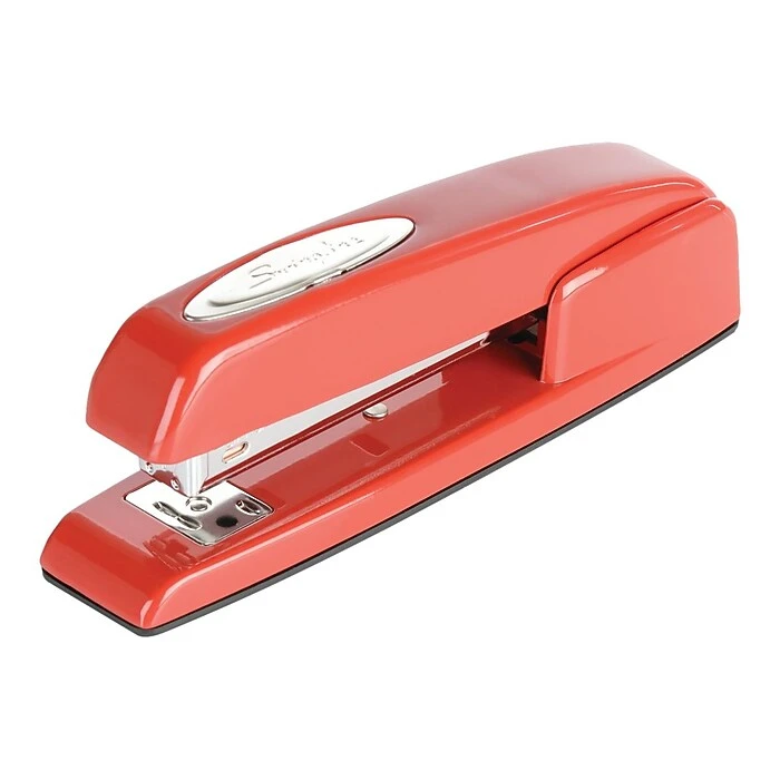 Keep contracts, invoices, and other documents bound together with this red stapler. The 25-sheet capacity allows for larger stacks of paperwork to be easily fastened, while the locking latch places the staple in the correct position for efficient results. This Swingline 747 Rio red desktop stapler can be opened, making tacking announcements, flyers, and other notices to boards simple to achieve.