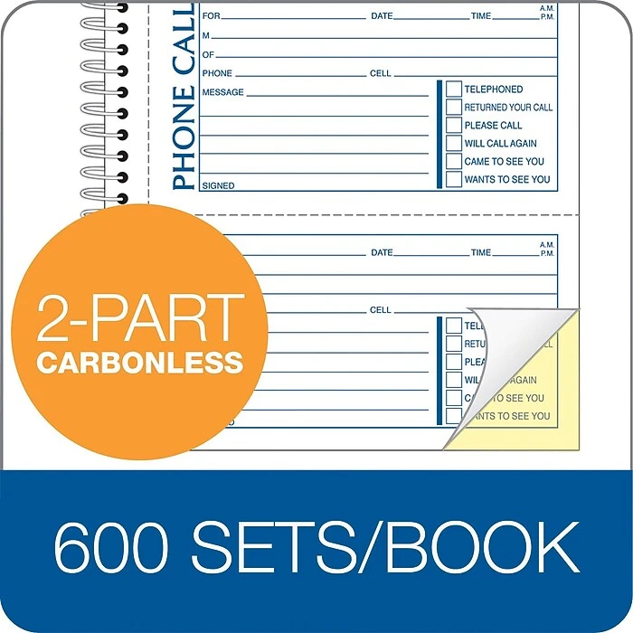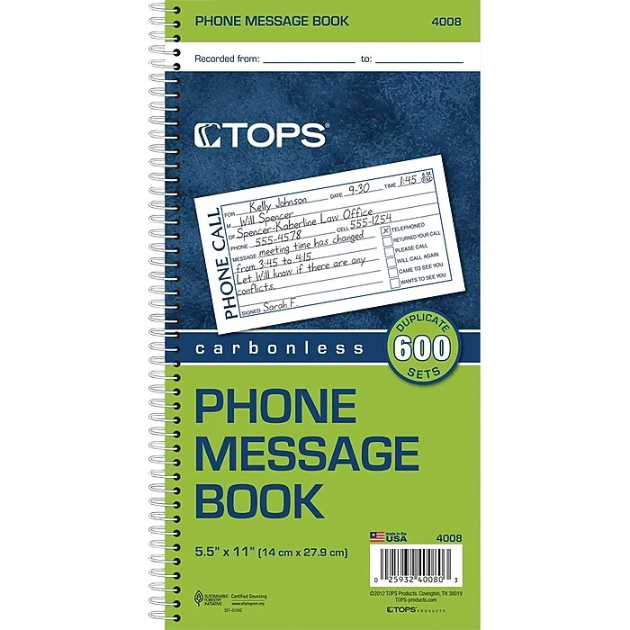 TOPS® Phone Message Book, Ruled, 2-Part, White/Canary, 11″ x 5 1/2″, 1/Ea
