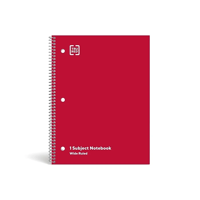 Stock your paper supplies cupboard with these assorted-color 1-subject notebooks. A spiral-bound design makes it easy to turn the pages, while the wide ruling ensures notes are large and easy to read. With six notebooks in the pack, these TRU RED 8 x 10.5-inch assorted-color 1-subject notebooks ensure you have paper on hand when you need it.