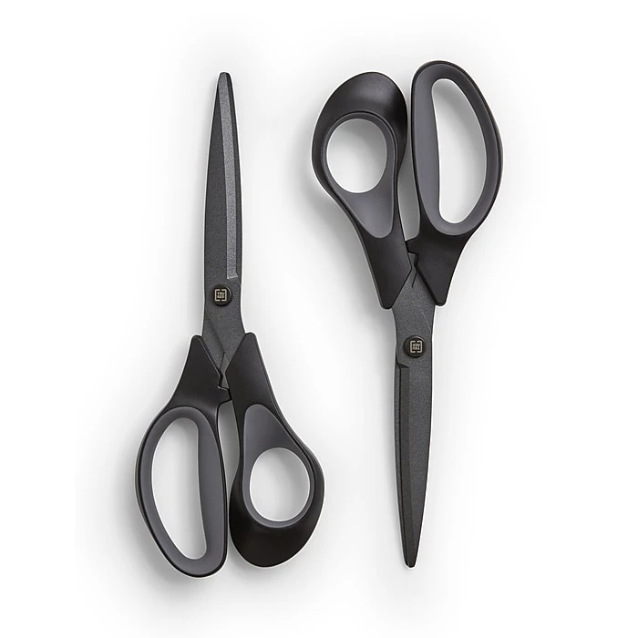 The ergonomic handles boast a soft-touch feel for enhanced comfort and control, while the curved 3-D blades bring sharp, clean lines to your projects. With a non-stick titanium coating, these TRU RED™ 8-inch straight-handle scissors resist buildup when cutting through labels, tape and other self-adhesive materials.