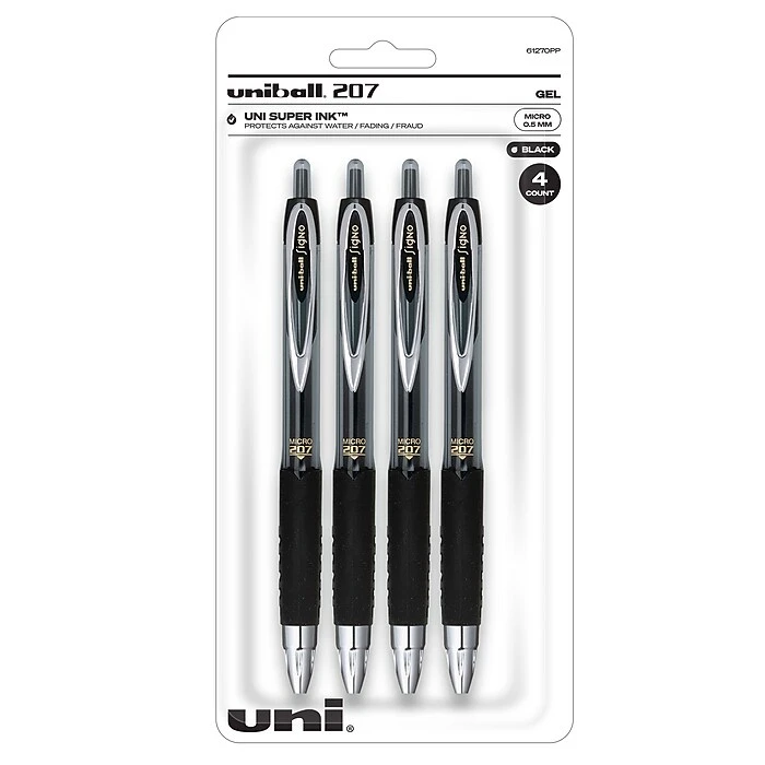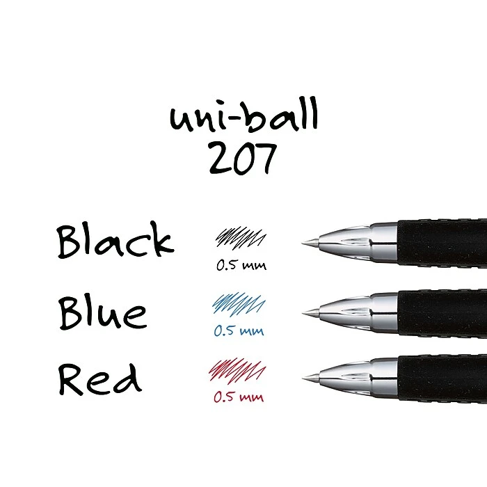 Take notes with sharp precision using these uni-ball 207 micro-point retractable gel-ink pens. The cushy grip gives you solid control while providing comfort during extended writing sessions, and the retractable design keeps your purse, pocket or desk drawer safe from unwanted stains and messes. These uni-ball 207 retractable gel-ink pens feature quick-drying ink so your writing stays crisp and clean.