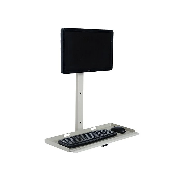Lightweight and easy to install, the Basic Wall Mount Computer Station provides a functional sit or stand computer station wherever space is at a premium. Able to be mounted to almost any flat surface, the steel Basic Wall Mount Computer Station comes complete with one non-adjustable VESA monitor arm and a fixed keyboard tray. Designed to save space, the 24″x8″ keyboard tray extends to 12″ away from the wall when in use. Coated with a scratch-proof finish and available in Warm Gray or Black River, this compact Computer Station is an ideal option for children’s bedrooms, medical offices, warehouses, classrooms, and commercial kiosks. Note: the Wall Mount CPU Holder is sold separately.