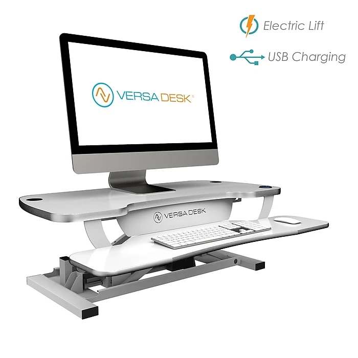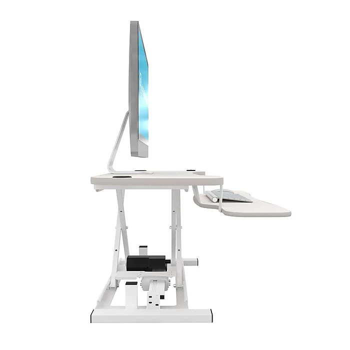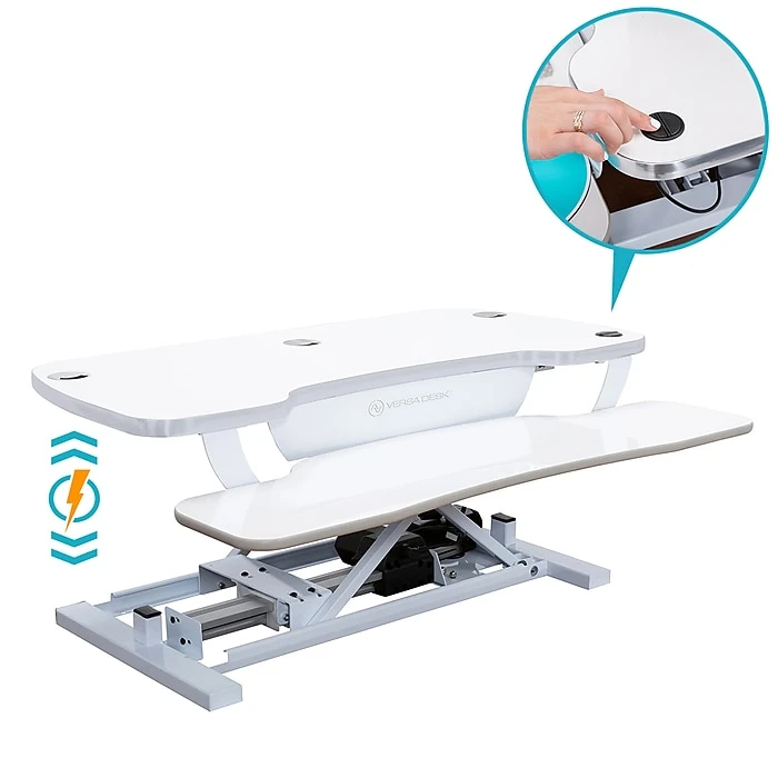 The easy to use back-lit push button control allows you to effortlessly adjust to any desktop height up to 20″ from the surface it rests on, while holding up to 80 Lbs. of equipment. With minimum assembly required you can now go from sitting to standing as you please throughout your work day, at the push of a button! Backed by a fantastic warranty, you and your PowerPro® Sit to Stand Desk Converter can stay productive for a very, very long time.