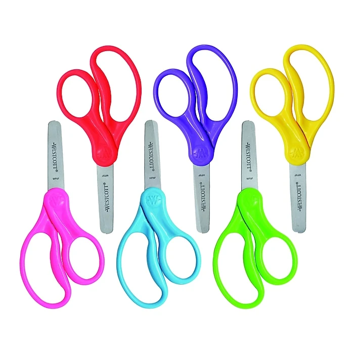 Westcott School scissors are especially designed for a child’s hand and feature extra-strong and durable stainless steel safety blades. The molded symmetrical handles allow for either left- or right-handed use. The scissors easily cut through paper, fabric, string, and other craft materials.